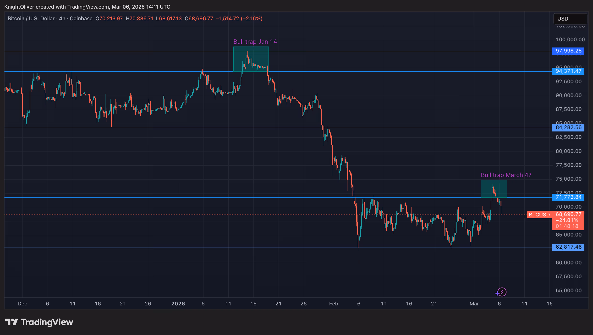 Some traders labeled the sharp rally earlier this week as a “bull trap” — a brief breakout that entices late buyers before reversing lower. While institutional confidence is on the rise, with limited liquidity, a nervous market, macro challenges, and a lack of clear catalysts, bitcoin’s price movements this week appear to have validated their concerns.