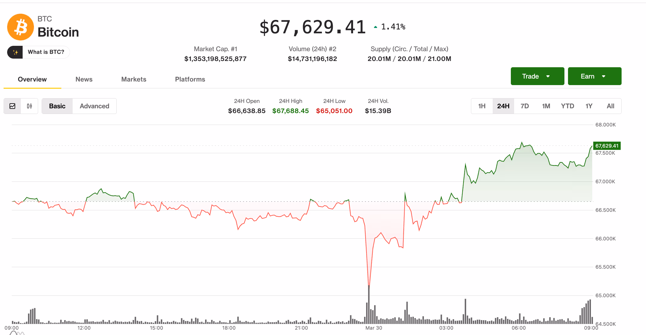 - Bitcoin climbed to $67,300 and ether reached $2,045, yet both are still confined within a broader bearish range, unable to breach significant resistance levels.