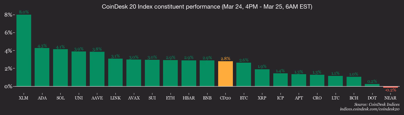 - CoinDesk 20 is up 2.73% at 2,065.01 (24hrs: +0.93%)