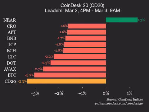 Leaders: NEAR (+1.3%) and CRO (-1.6%).