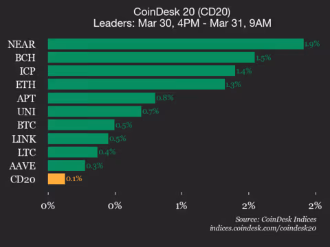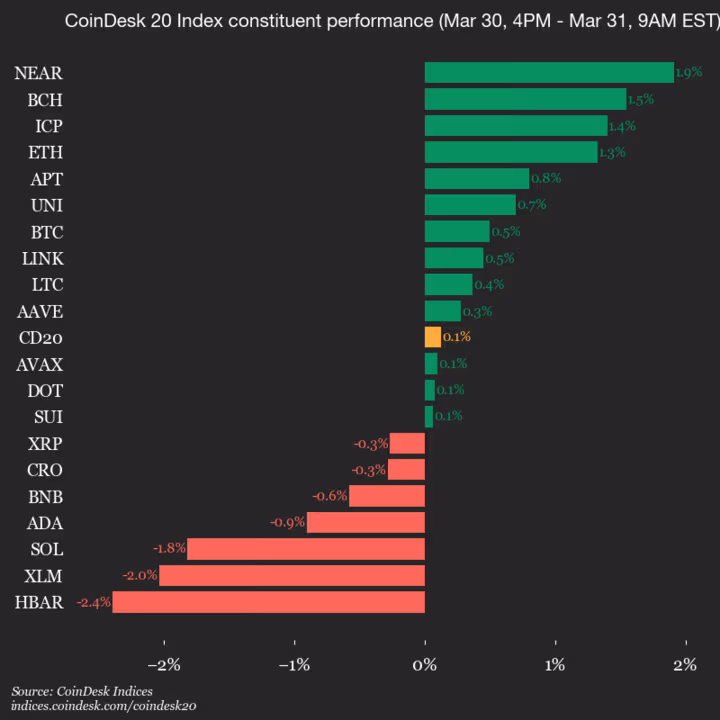 Top performers: NEAR (+1.9%) and BCH (+1.5%).