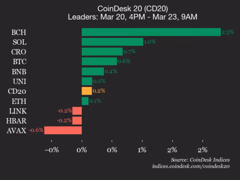 CoinDesk 20 performance report: Bitcoin Cash (BCH) rises by 2.3%, propelling index upward