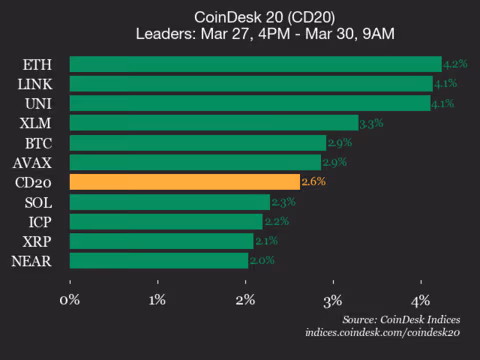 CoinDesk 20 performance report: Ethereum (ETH) sees a 4.2% increase over the weekend.