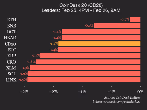 CoinDesk 20 performance report: index decreases by 1.4% as all components experience a decline