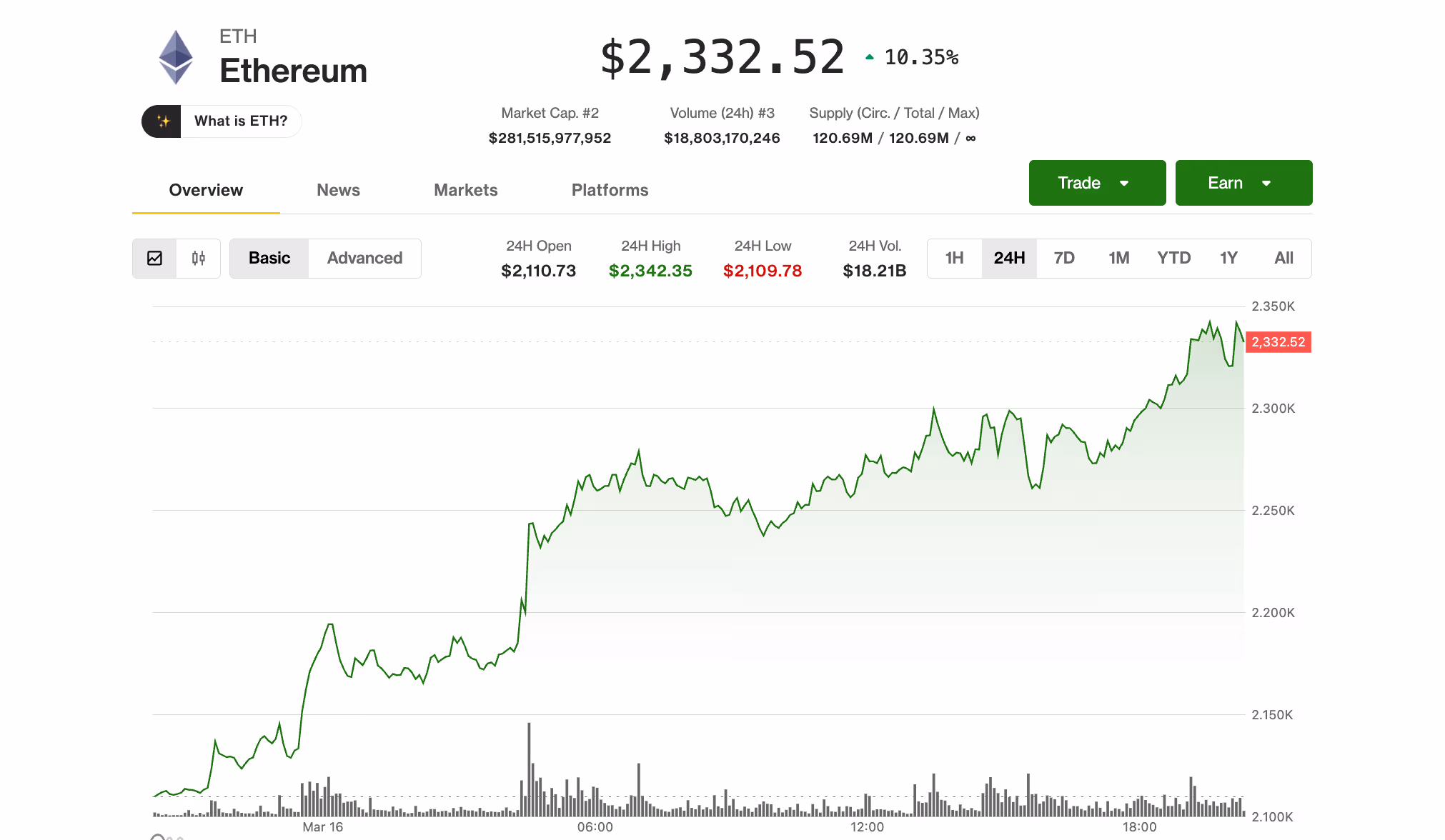The native token of Ethereum, ETH, climbed above $2,300, achieving over a 10% gain within the last 24 hours. This performance significantly surpassed bitcoin’s 3% rise and the approximately 5% increase in the CoinDesk 20 Index, indicating a shift in momentum towards assets outside of bitcoin.