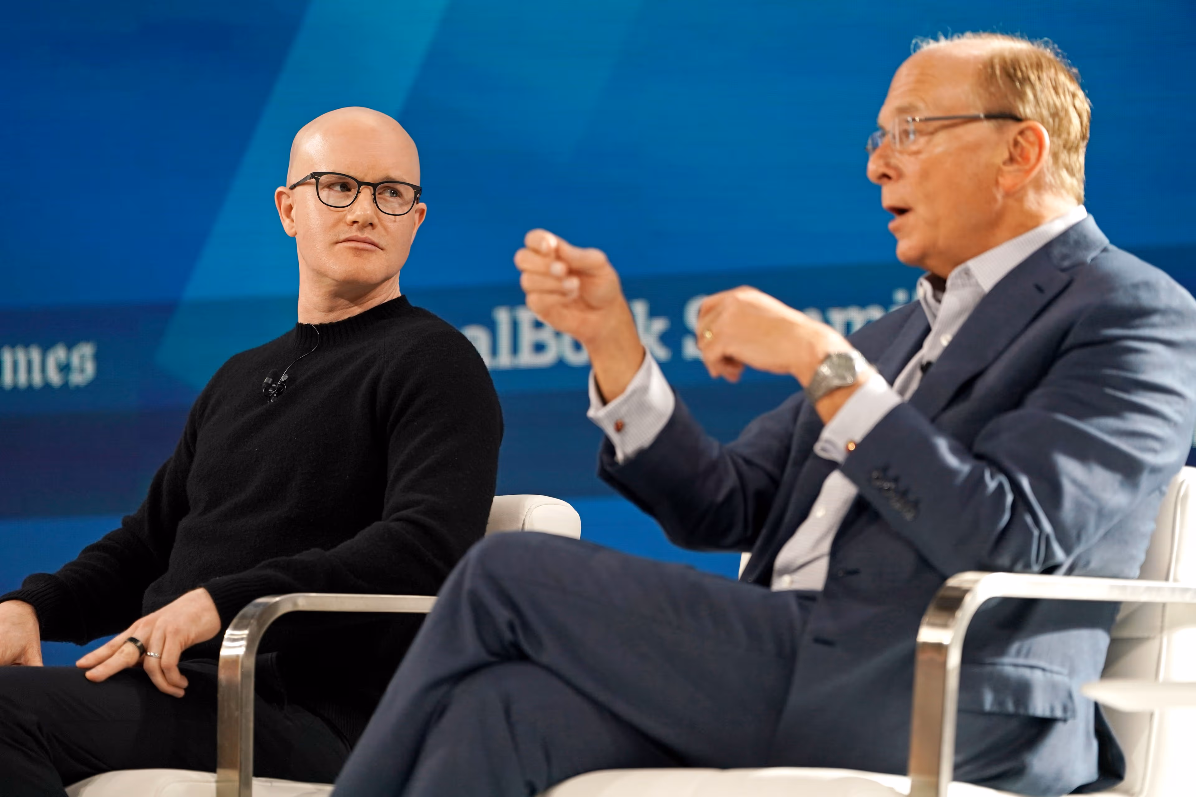 Brian Armstrong and Larry Fink (David Dee Delgado/Getty Images)