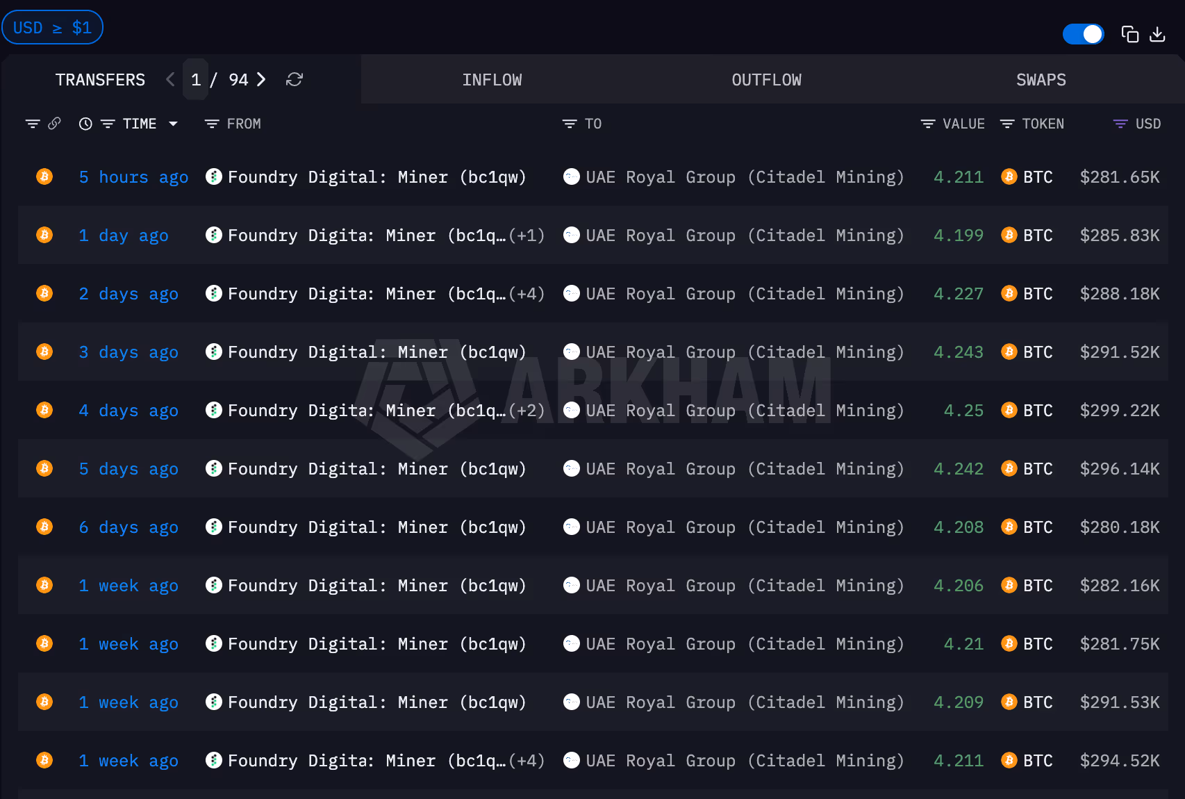 Wallets connected to the UAE Royal Group currently hold approximately 6,782 BTC with an estimated value of around $450 million. Excluding energy expenses, Arkham assesses the position as highly profitable, reflecting the advantageous cost from years of large-scale mining compared to market purchases.