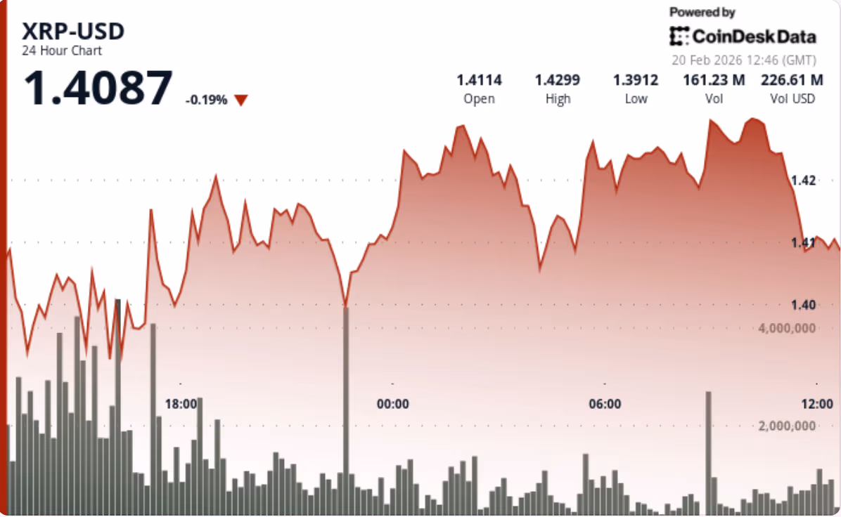 - XRP dipped 0.14% to $1.42